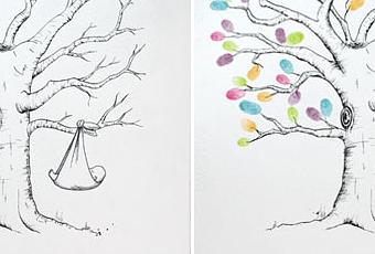 No sólo nos dedicamos a las bodas, por eso hemos creado también un árbol de huellas para bautizo o nacimiento, en el que, de una de las ramas, cuelga un bebé recién traído por la cigüeña.