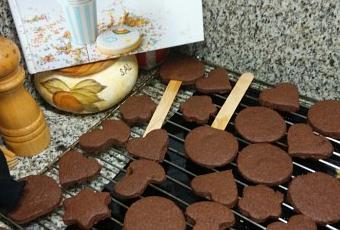 Nosotros hicimos en casa la receta de las piruletas de galletas, con motivo del cumpleaños de la mayor, y os puedo decir, que lo pasamos pipa pesando los ingredientes, glaseando el azúcar, usando el rodillo (todo un descubrimiento), haciendo las figuras con los moldes y, cómo no, decorándolas con tinta de colores comestible.