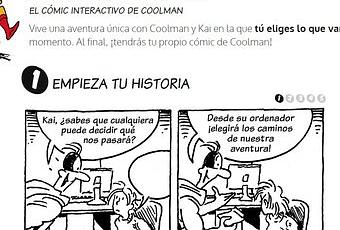 Coolman y tú consiste en un juego on-line gratuito, diferente y divertido que permite a los niños crear diferentes historias en formato cómic sobre los personajes de la colección Coolman y yo: Coolman y Kai.Este juego permite que, partiendo de un mismo inicio, podáis crear vuestro propio cómic pasando por 4 pantallas diferentes.Una vez finalizada la historia, podréis ver el conjunto de tiras cómicas que habéis elegido de manera interactiva, imprimirla y compartirla.Además, tenéis la opción de volver a empezar y realizar un nuevo y diferente cómic, pudiendo llegar a crear hasta 16 historias diferentes!