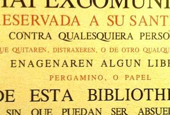 "... Nos, sobre esto, en la medida que interesa a nuestro oficio, deseoso de poner remedio oportuno, voluntariamente y nuestro conocimiento decidido, ordenamos por el tenor de la presente, a todas y cada una de las personas eclesiásticas seculares y regulares de cualquier estado, grado, orden o condición que sean, aun cuando brillen con la dignidad episcopal, no sustraer por hurto o de cualquier modo que presuman de las mencionadas bibliotecas o de algunas de ellas, algún libro o cuaderno, pues nos queremos sujetar a cualquiera de los sustrayentes a la sentencia de excomunión, y determinamos que en el acto, nadie, fuera del romano pontífice, pueda recibir la absolución, sino solamente en la hora de la muerte.”