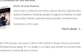 "La Editorial Literanda (www.literanda.com), de reciente creación, siente una pasión confesa por los libros electrónicos, como lo refleja el hecho de que todo su catálogo sea digital. Ofrece la edición de e-books gratuitos y también la opción de venta a precios muy competitivos. En los dos meses de andadura de la editorial ya ha publicado 35 títulos y esta semana lanza su primer libro de pago de narrativa actual. “La posada de los vientos y otros cuentos inquietantes” es el segundo libro de relatos de su autora, Rocío de Juan Romero, y estará a la venta por 1,65 euros. No hay excusas para no leer"