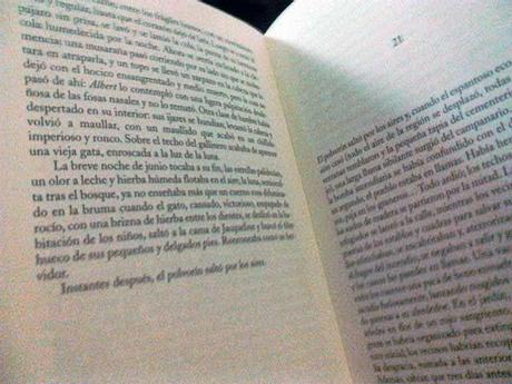 "La breve noche de junio tocaba a su fin, las estrellas palidecían, un olor a leche y hierba húmeda flotaba en el aire; la luna, semioculta tras el bosque, ya no enseñaba más que un cuerno rosa difuminado en la bruma cuando el gato, cansado, victorioso, empapado de rocío, con una brizna de hierba entre los dientes, se deslizó en la habitación de los niños, saltó a la cama de Jacqueline y buscó el tibio hueco de sus pequeños y delgados pies. Ronroneaba como un hervidor."Lo de "ronroneaba como un hervidor" me mató. La riqueza de la prosa de esta extraordinaria autora es impecable. Además era una gran amante de los gatos y ese mínimo detalle me conmueve, entre otros no tan pequeños. El fragmento es parte de un todo mucho más potente que describe, mediante la ayuda del contraste entre lo bello de la naturaleza y el horror de la guerra, la radiografía de lo que era Francia durante la Segunda Guerra Mundial. Un libro que recomiendo leer, en especial por la forma en que llegó a ser editado. Un dato más: Este año se iniciará el rodaje de la película basada en Suite francesa. Suena el nombre de Saul Dibb, como director, y en el reparto actores como Matthias Schoenaerts, Kristin Scott Thomas, Sam Riley y Michelle Williams.