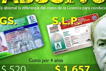 Mientras en estados vecinos los costos son infinitamente bajos en SLP por citar solo un ejemplo, por renovar la licencia por cuatro años tendrá un costo de $1,657.00 a diferencia de Aguascalientes solo cuesta $ 520.00 y por dos años en SLP cuesta $ 1,307.00 en cambio en AGS cuesta solo $400.00