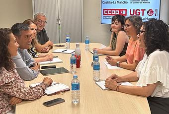 Reunión a la que también han asistido la secretaria de Organización Silvia López, y la secretaria de Empleo, Igualdad y Políticas Sociales Isabel Carrascosa por parte de UGT; y la secretaria de Organización María José Mesas, la secretaria de Diálogo Social y Salud Laboral Raquel Payo, y el secretario de Acción Sindical Ángel León por parte de CCOO.