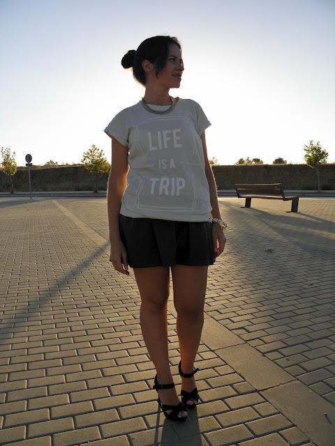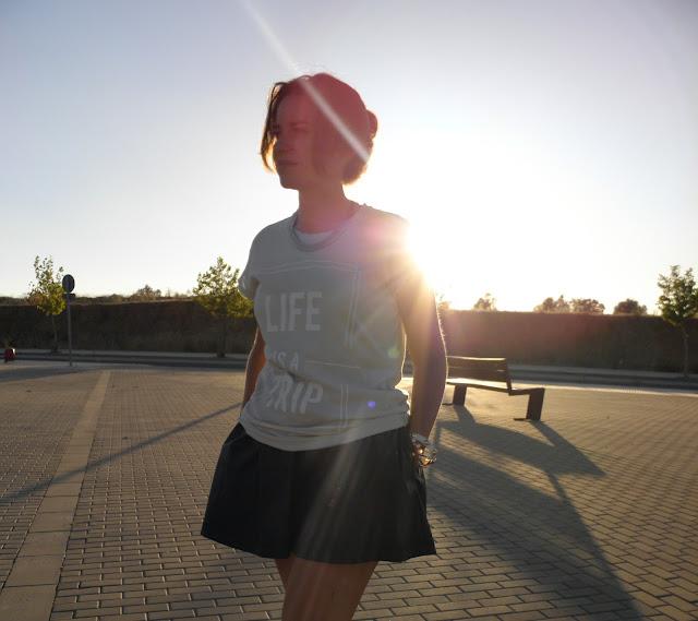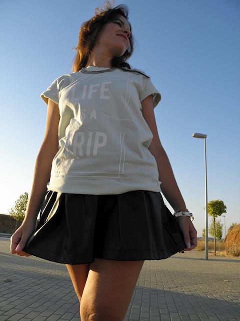 Life is a trip..la vida es un viaje, es el lema de la camiseta que os enseño hoy. La encontre en Zara el otro día, en la sección de Precios agradables o "nice price".jaja La falda es de hace unas temporadas de Zara y me encanta.Espero que os guste y siguiendo a mi camiseta, vivid vuestro viaje de la mejor forma posible, porque aunque nos traigas cosas que no nos gusten, merece la penar viajar...