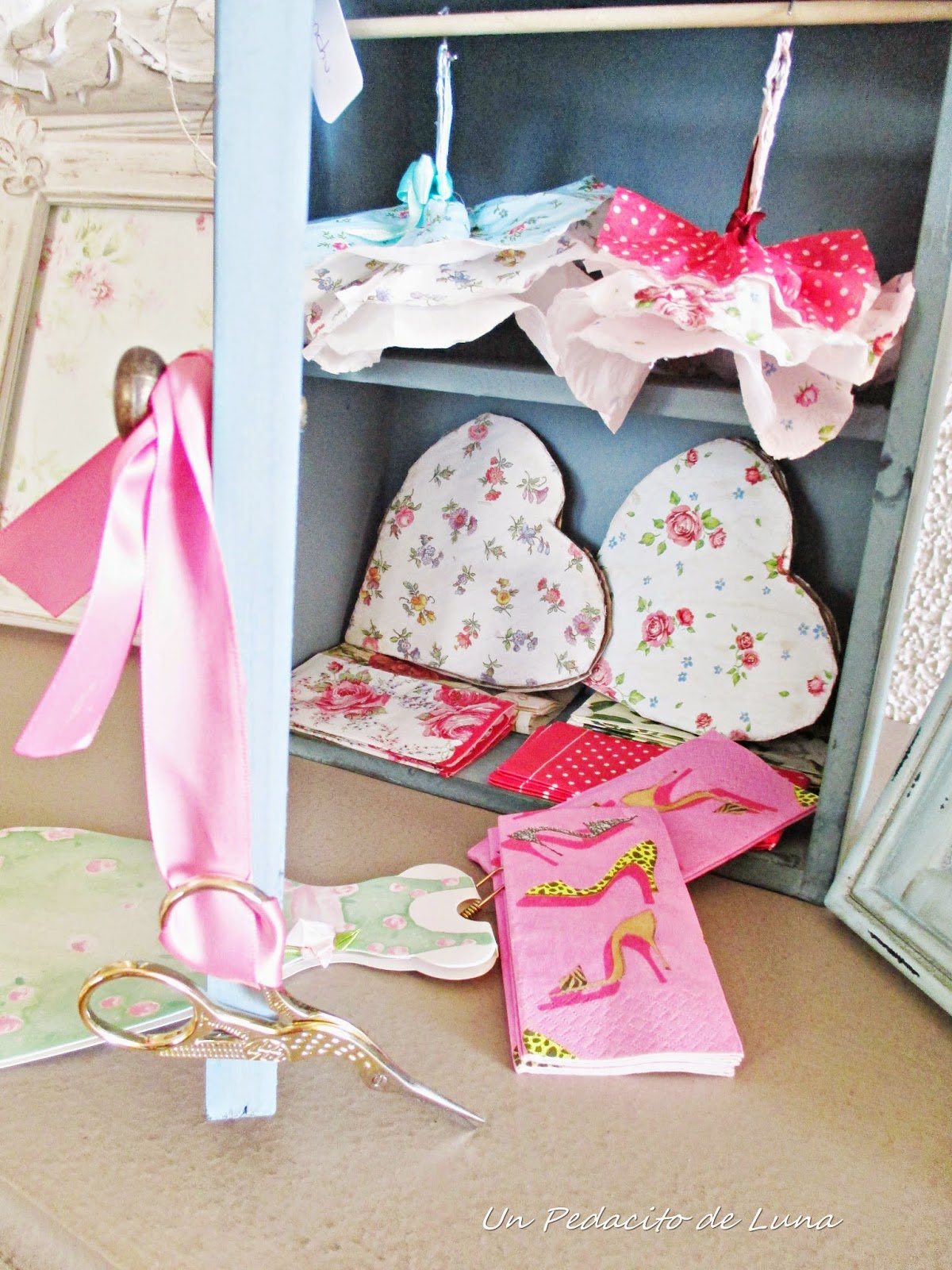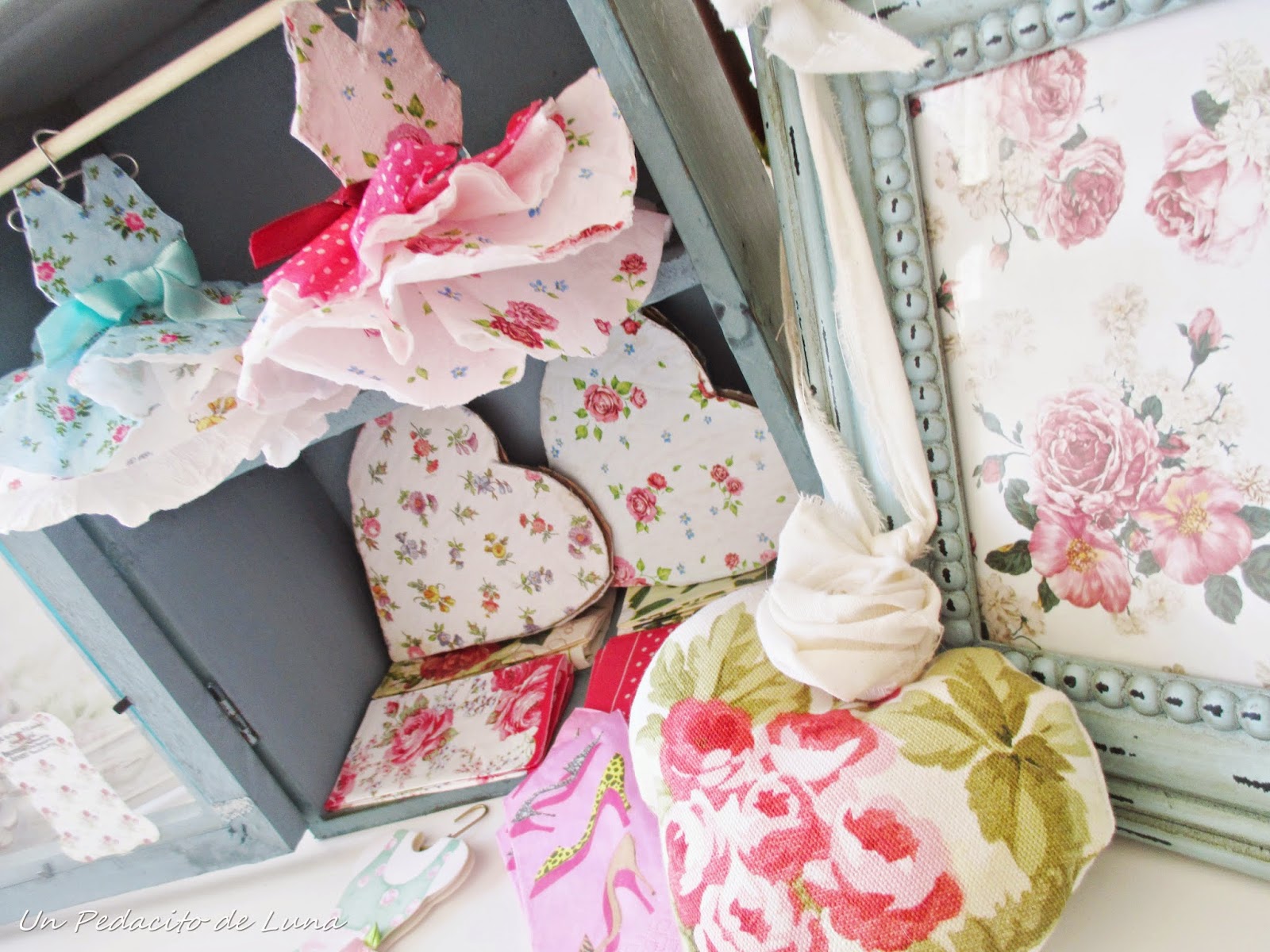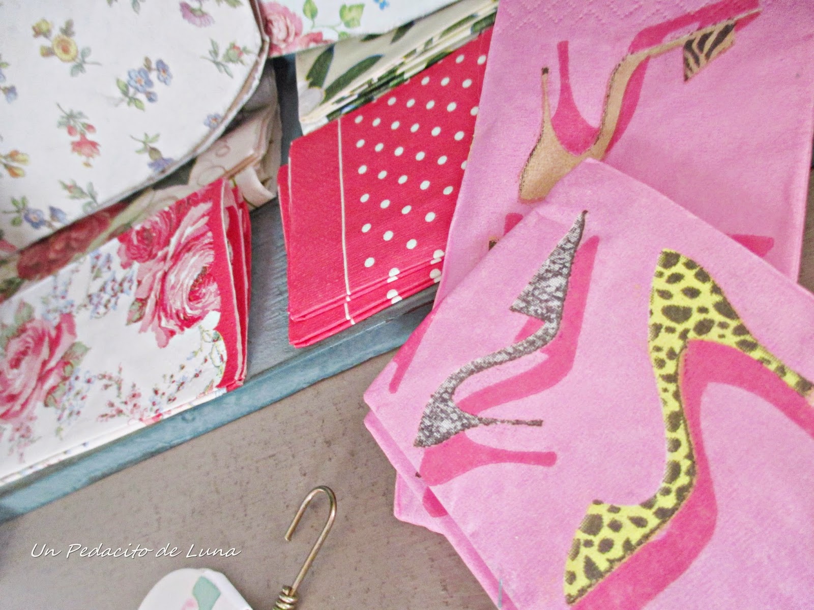 Aquí tengo más "telitas" por si se me antoja diseñar alguno más, jeje...Puedo verlos como complemento a algún regalo, pinchados en el tabón de anuncios en "micuartodetodounpoco", para fiestas infantiles, como apoyo de cualquier trabajo femenino.....