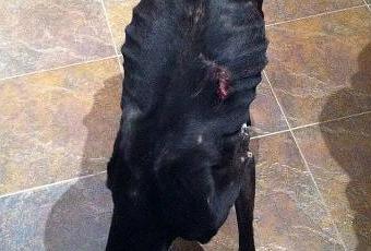 Hoy ha pasado la revisión veterinaria, seguramente haya que amputarla parte de su rabito que unicamente esta unido por hueso, tiene anemia y cero de masa muscular. Ha dado negativo en leishmania, erliquia y filaria. Ha sido desparasitada por dentro y por fuera y realizado un hemograma completo. Pesa 15 KG :(