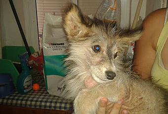 Lima es un cruce de nordico. Tiene dos mesecitos y si no llegamos a cogerla, en poco tiempo hubiese muerto sola en la calle, tiene la piel en carne viva, y los picores tienen que ser terribles.