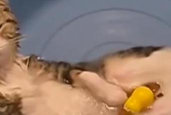 A la falta de agua, los gatos se divierten con agua, en el twitter hay un gato que no se baña, le enviamos este video para que vea que bañarse da felicidad jajaja. No vamos a nombrar a nuestro amigo del twiter, pero sabemos que es un gato feliz. xD.