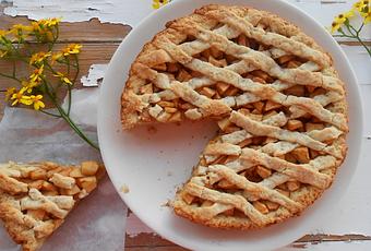 La tarta suele hacerse con distintas frutas, con arroz con leche, con chocolate blanco, con manzana y ron, pero la más típica es con albaricoques (damascos). Como en esta época no se consiguen, decidí hacerla con manzana y ron y quedó deliciosa.
