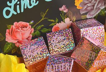 Por fuera tienen un precioso envase hecho en glitter holográfico rosado.