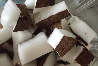 picamos el coco en pedazos pequeños y lo ponemos en la licuadora