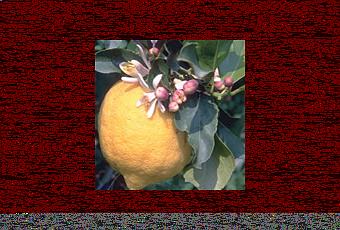 Las flores de esta planta medicinal son solitarias o en pares axilares, teñidas exteriormente de rojo, igualmente los pimpollos. El fruto conocido como limón, es ácido, amarillo, ovalado, y de 8-10 cm. de largo.