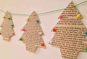 Seguimos con las ideas de Navidad. Hoy una que no puede ser más sencilla, una guirnalda hecha con hojas de un libro antiguo, pero que podéis hacer también con papel de periódico.