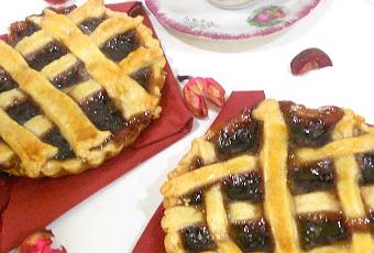 Estirar la masa sobre una tartaleta.Rellenar la tartaleta con la mermelada, Estirar el resto de la masa,cortar tiras largas y finasy colocarlas sobre la tarta en forma de reja.Pintar con huevo y hornear 30 minutos a 180º C.