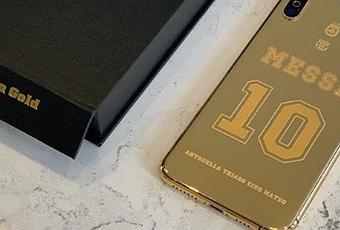 Lionel Messi presume un iPhone en oro de 24 kilates.