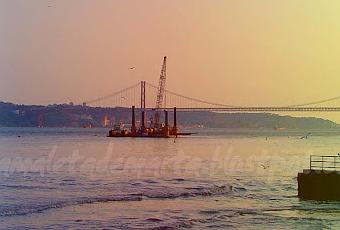 Vistas de la desembocadura del río Tajo y del Puente 25 de abril.