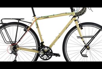 No es común asociar a las máquinas italianas con plataformas para cicloturismo; pero los la Hobo Bootleg de Cinelli es una interesante y rápida propuesta que se fabrica en tubos de acero Columbus Cromo. La Hobo logra ajustarse al neumático de 40mm con guardabarros (aunque estos últimos no se encuentran incluidos). En cambio, aquí se presentan soportes (incluyendo soportes frontales bajos), además de contar mandos a los extremos del manillar que pueden no ser los más confiables (precio sugerido de 1.499 euros).