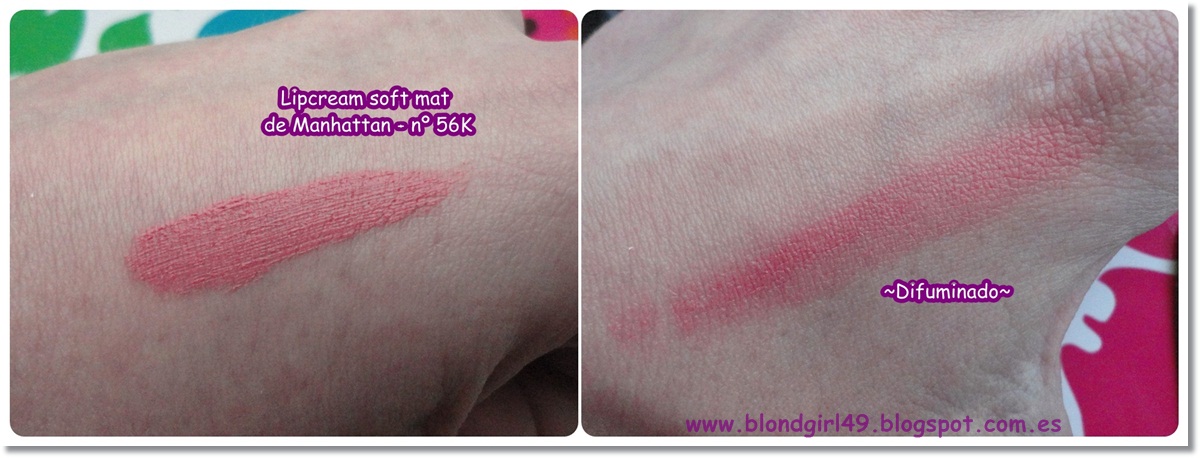 LIPCREAM SOFT MAT DE MANHATTAN:Esta es otra marca que hay en Müller que ya hace un tiempo que me he fijado en ella, me recuerda bastante a Catrice en cuanto a precios y productos. El otro día cuchicheando en stand vi este labial en formato crema que me gustó bastante así que me lo llevé a casa.La verdad es que me recuerda mucho a los de NYX, cuando pueda os tendría que hacer una comparativa porque se parecen bastante.En estos momentos es un labial que uso con bastante frecuencia así que ya deduciréis que me encanta^^, tiene una cobertura alta, no reseca los labios y dura bastantes horas.
