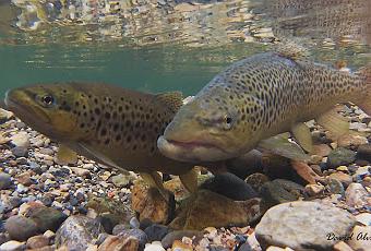 Un enorme macho de más de 40 cm de longitud, más pálido que el resto y con una mandíbula inferior retorcida que lo hace inconfundible, regenta una de estas zonas. Es el más fuerte de este tramo del río y mantiene a raya al resto de machos que se acercan. El agua es tan somera que muchas veces asoma su lomo por la superficie.