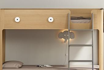 A diferencia de soluciones que recurren a piezas modulares complicadas, la cama Big Eyes ofrece una solución segura y sencilla. La posición de cama media-alta es más adecuada para niños pequeños o hermanos que comparten cama. La litera superior es la cama principal y la inferior funciona como zona de juegos o puede ser una cama secundaria. Una vez que el niño crece, se puede quitar la escalera y dar la vuelta a la cama para que actúe como cama básica.