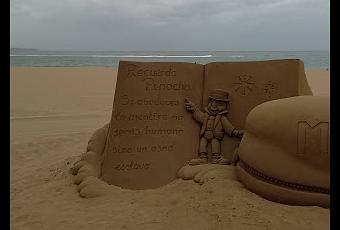 Cualquier lugar es bueno para disfrutar de la literatura, como podemos comprobar en esta escultura de arena que encontramos en la Playa de Las Canteras de Las Palmas de Gran Canaria con texto de Las aventuras de Pinocho, de Carlo Collodi: "Recuerda, Pinocho: si obedeces la mentira no serás humano, sino un asno esclavo."