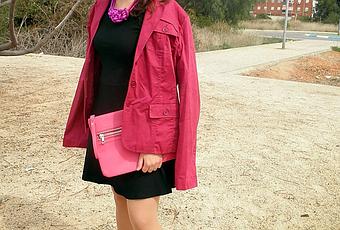 Hoy os muestro un look que me encanta. He combinado un vestido negro ( un básico en el armario de cualquier mujer) con unos complementos que le dan al look todo el color que necesita para ser radiante.Llevo mis maravillosas sandalias, las que compré hace un mes en Primark y que ya os he enseñado en otros looks. El bolso lo tengo del verano pasado y esta primavera le estoy sacando mucho partido. He acompañado este outfit con un collar de nudos marineros, y unas pulseritas negras de macramé con detalle de osito en fucsia y en negro transparente. Estas maravillas las hace Sandra, y podéis verlo en su blog.