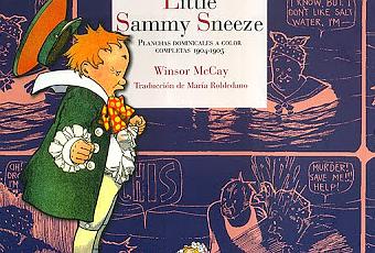 Winsor McCay.Little Sammy Sneeze.Planchas completas a color 1904-1905.Traducción de María RobledanoLos tebeos de Cordelia. Madrid, 2013.Con las planchas dominicales a todo color de Little Sammy Sneeze, la serie que Winsor McCay publicó entre 1904 y 1905 en The New York Herald,Reino de Cordelia inaugura una nueva colección, Los tebeos de Cordelia.Una serie que fue el precedente del clásico Little Nemo in Slumberland, que McCay publicaría desde el año siguiente. La protagoniza un temible niño -Little Sammy Sneeze- que nunca habla, nunca sabe cuándo va a estornudar y siempre estornuda, porque no puede evitarlo, de una manera tan inoportuna como destructiva.Invariablemente, esos estornudos provocan catástrofes comparables a tifones domésticos que incluso afectan al equilibrio de los recuadros y conducen con frecuencia a una viñeta final en la que una patada en el trasero acaba levantándole los pies al estornudador incontenible. Santos Domínguez