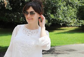 Además no hay nada más útil que recurrir al estilo desenfadado con un moño juvenil, unos shorts y complementos básicos. Lo mejor de este look mi blusa preferida con unos detalles preciosos y ese aire ibicenco que combina con todas las personalidades ¿ os gusta?