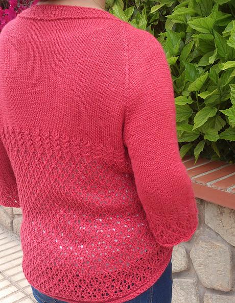 Elpatrón , muy bien explicado y ameno de tejer, lleva una parte en punto jersey y antes de empezar el calado tiene un motivo trenzado.