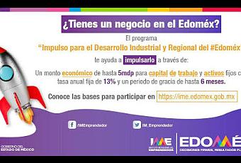 Por medio del Instituto Mexiquense del Emprendedor (IME), la Sedeco reiteró la invitación a los micro, pequeños y medianos empresarios (Mipymes), para acceder a una línea de crédito, con condiciones favorables, consultando las bases en la dirección https:/ime.edomex.gob.mx.