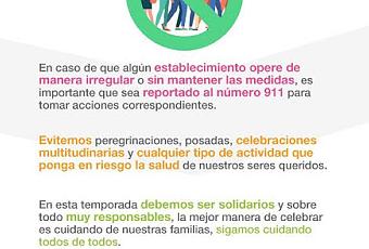 Cabe mencionar que el Estado de México continúa en Semáforo Naranja, con Riesgo Alto, por lo anterior, el Gobierno estatal exhorta a las y los alcaldes a difundir estas medidas entre sus habitantes, a fin de mantener un trabajo coordinado para fortalecer el cuidado de la salud y la preservación de la vida.