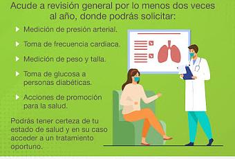 La dependencia subraya la recomendación de acudir a revisión general, por lo menos dos veces al año y, en el caso de quienes padecen enfermedades crónicas como diabetes, obesidad e hipertensión, es importante que nuevamente acudan con su médico para continuar con sus citas y control de su padecimiento.