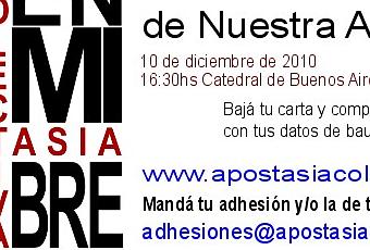 El día 10 de diciembre de 2010, en distintas ciudades de Nuestra América, presentamos nuestras cartas de renuncia a la Iglesia Católica.Basando su legitimidad en todas las personas bautizadas, la Iglesia intenta implantar su moral en la sociedad y en las relaciones humanas, subyugando y condenando toda forma de vida que no se le doblegue.La apostasía colectiva es un acto de repudio público a la manipulación de la Iglesia Católica en la vida ciudadana. Es una forma de manifestar el desacuerdo con su política social, sexual y económica dejando en claro que NO nos representa y que no deseamos que reciba, del Presupuesto del Estado Nacional, subsidios ni privilegios en nuestro nombre.