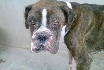 Se le han echo analíticas y a dado positivo en lehismania, como se puede ver evidente en las fotos, y en sarna. Cuando se le pase este último problema dérmico se le harán todas las pruebas pertinentes, ya que ahora esta muy débil y es imposible realizarlas.