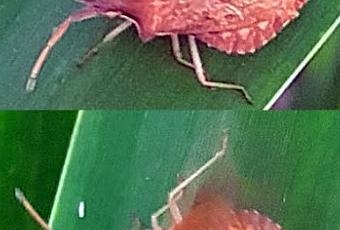 11/07/2020. Había poca luz y el móvil no da más de sí. Pero imaginaos la llamarada sorpresiva, ese abdomen como una brasa incandescente, que estalla visualmente por un segundo en la penumbra en el momento en que esta chinche, Coreus marginatus, abre las alas para salir volando cuando me acerco demasiado. Debe dejar petrificado a cualquier depredador en ese último instante decisivo.