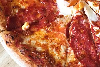 Respecto a la pizza, se aplica la misma forma de hacer. Su masa eleborada con harina orgánica, sufre una fermentación de 48 horas para asegurar una digestión bastante más ligera. Pasan por su horno de leña para conseguir el crujiente adecuado y, aunque quizá nos despisten sus nombres, no falta la margarita y los ingredientes que esperamos encontrar. Posiblemente mezclados como pocos esperan. Si tuvieran que elegir una pizza emblema de Amassame, seguramente elegirían la llamada Rocco-co de tomate, mozzarella, spianata picante, huevo de corral y pesto rojo. ¡Ahí es nada!