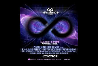 El Metro Dance Festival llega con fuerza, lo hace con un cartel potente.El 31/10 llega el Metro Dance Festival que se une a la fiesta Los Otros, será desde las 18:00. Ojo, en este caso, los cuatro stages habilitados tendrán una gran programación desde Simian Mobile Disco, Michael Gracioppo, El Columpio Asesino, David Kano o Amatria. Ojo con el Stage 3 este que acogerá los conciertos de El Columpio Asesino y Amatria, serán entre las 18:00h y 00:00h con precio especial de entrada anticipada sólo para ese escenario de tan solo 12€ + GD.