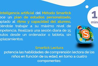 La inteligencia artificial de Smartick permite ofrecer un plan de estudios personalizado, adaptando en tiempo real el ritmo y la dificultad al alumno, permitiéndole que trabaje siempre en la frontera de su máximo nivel de competencia. Para ello, solo tiene que realizar una sesión diaria de 15 minutos (sin horarios rígidos) desde un ordenador o tableta, sin desplazamientos.