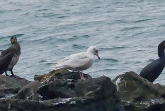 Después del festival de hiperbóreas que han disfrutado estas navidades en Galicia, era de esperar, o de desear, que llegaran tarde o temprano por aquí. Pues esta tarde Geoff y Anabel Harries junto con un servidor pudimos localizar una gaviota hiperbórea Larus hyperboreus de primer invierno en la ría de Avilés.