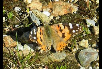 La migración de la vanesa atalanta, aunque más enmascarada por esta presencia de ejemplares en todas las épocas, es tan importante como la de la cardera, y probablemente llega más al norte. Por cierto, los ejemplares que fotografié estaban haciendo lo que se llama hilltopping. Sedimentados en las zonas altas, cuando pasaba otra mariposa, de cualquier especie, por su zona, la perseguían hasta provocar su huida. Lo curioso es que las atalantas se perseguían también entre ellas, mientras que ignoraban a la cardera que estaba con ellas.