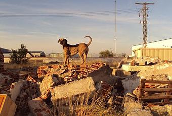 Olvidado, lleva un año atado a una cadena, malviviendo entre escombros, basura, cristales rotos, a la intemperie, en la mas absoluta soledad y miseria.. Ahora su estado es preocupante porque esta esquelético y viene el invierno, pero nadie le ve.