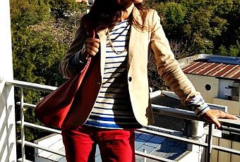 Blazer -Zara-, Remera rayada -Yagmour-, Pantalón -María Vázquez-, Cartera -Silvia Kosin-, Zapatos -C'est fini-, Cadena dorada -Vintage-.
