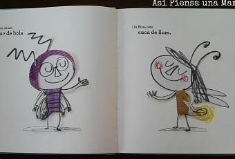 Las ilustraciones de este libro me enamoraron desde el primer día que supe de él. El libro parece un collage, sencillamente me encanta y le da un toque especial. Anna Llenas nos presenta a Rita y Lolo, una luciérnaga y un bichito de bola.