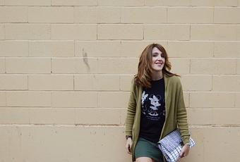 Hola preciosas!! Parece que en estos días tan grises apetece un cardigan de estos que te abrazan el cuerpo y quedan tan bien... Pues esto me paso a mi el día que hicimos este look, que me apetecía una prenda de este tipo, el cielo estaba bastante encapotado y pensábamos que nos iba a llover pero el tiempo nos dió justo la tregua necesaria para hacer las fotos y soltar un tremendo chaparrón después, jijiji!! Un look casual, ideal para nuestro día a día si no tenéis dresscode en el trabajo o perfecto para el fin de semana, unas cañitas, día de shopping, etc... La camiseta que llevo me encanta, no solo por el mensaje sino porque la eligió mi pequeña princesita (va apuntando maneras) y es súper cómoda. Distintos tonos de verde en falda y chaqueta y botines marrón chocolate. El bolsito tipo cartera es perfecto ya que tiene un tamaño ideal para guardar cosas y además lo puedes usar como bandolera.