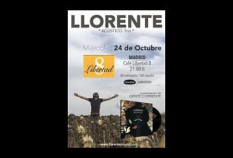 Llorente quiere presentar, dentro de su gira, su nuevo disco, hablamos de Gente Corriente; un nuevo trabajo que le llevará a varios conciertos con varias formaciones. En el caso del 24/10 será en un trío acústico con muchas sorpresas y en un escenario íntimo y cercano para empezar la semana musical con buen pie.