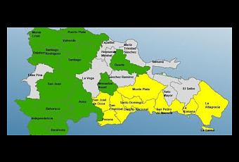 En alerta amarilla, San José de Ocoa, Santo Domingo, Distrito Nacional, San Pedro de Macorís, La Romana, Peravia, San Cristobal, la Altagracia y Monte Plata.