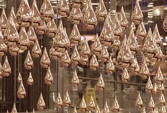 Hola hola! Nosotros somos de los que agradecemos el buen tiempo allá donde vayamos, pero mucha gente estará dónde están las lluvias, el fresquito, etc. Por eso nosotros, os adelantamos una tormenta, pero nada tiene que ver con el tiempo, una tormenta de luminarias!!! ¿Interesante, no? Se trata de Kinetic Rain, una instalación de 608 luminarias de aluminio revestidas de cobre, realizada por el estudio ART+COM en el aeropuesto Changi de Singapore. Ocupa unos 75 m2 y 7,3 m de altura. Os dejamos un vídeo para que veáis el movimiento de la instalación: ver aquí.
