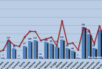 Luego de que el 48 por ciento de las estaciones meteorológicas pertenecientes al Servicio de Meteorología de la Aviación presentaran durante el mes de agosto un registro pluviométrico por encima de su media mensual, septiembre de éste año 2014 se comporta por debajo de lo que debió llover en gran parte del país, de acuerdo a las estadísticas climatológicas. La excepción en este caso fue Maracaibo con 166 milímetros durante todo el mes en estudio siendo su promedio de 106 milímetros (1 milímetro equivale a 1 litro de agua por metro cuadrado). Así mismo ocurrió en Guasdualito donde se registraron 192mm siendo su media de 188mm.