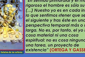 “En sentido primordial y el más rigoroso el hombre es sólo su «yo». (…) Nuestro yo es en cada instante lo que sentimos «tener que ser» en el siguiente y tras éste en una perspectiva temporal más o menos larga. No es, por tanto, el yo ni una cosa material ni una cosa espiritual: no es cosa ninguna, sino una tarea, un proyecto de existencia” (Ortega y Gasset[1]).